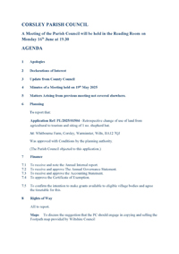 Agenda for the meeting held on 19th May 2025: