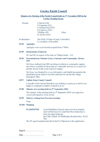 Minutes for the meeting held on 6th November 2024: