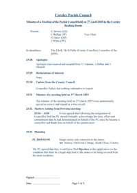 Minutes for the meeting held on 7th April 2025: