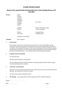 Report for the Annual Parish Meeting held on 8th July 2024:
