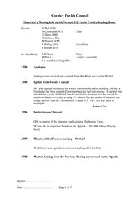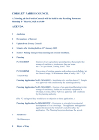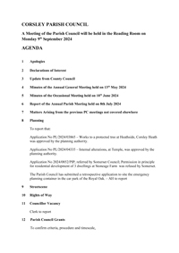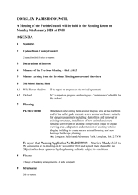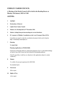 Everyone is welcome to attend but there are protocols for the public to speak at the meetings. Interruptions of PC discussions by the public are not allowed. If you would like to speak on a subject at one of the meetings, please email the Clerk, John Willcox (corsleypc_jdw@aol.com), who will add it to the agenda. These opportunities to speak will be arranged at the beginning of each meeting and speakers will be allotted a set amount of time.