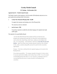 Agenda Item 8.1 - PC Grants for the meeting held on 9th December 2024: