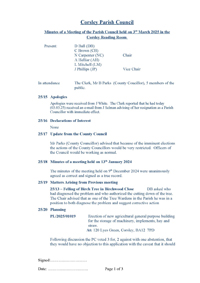 Minutes for the meeting held on 3rd March 2025: