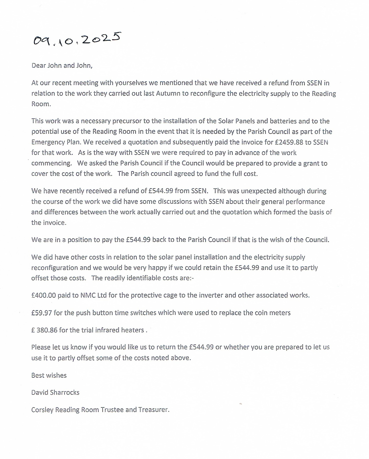 Minutes for the meeting held on 15th September 2025: